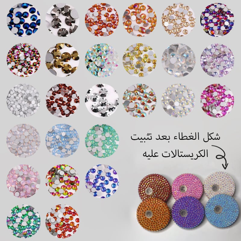 الصورة الملحقة توضح ألوان الكريستالات المتوفرة وشكل الغطاء بعد التزيين