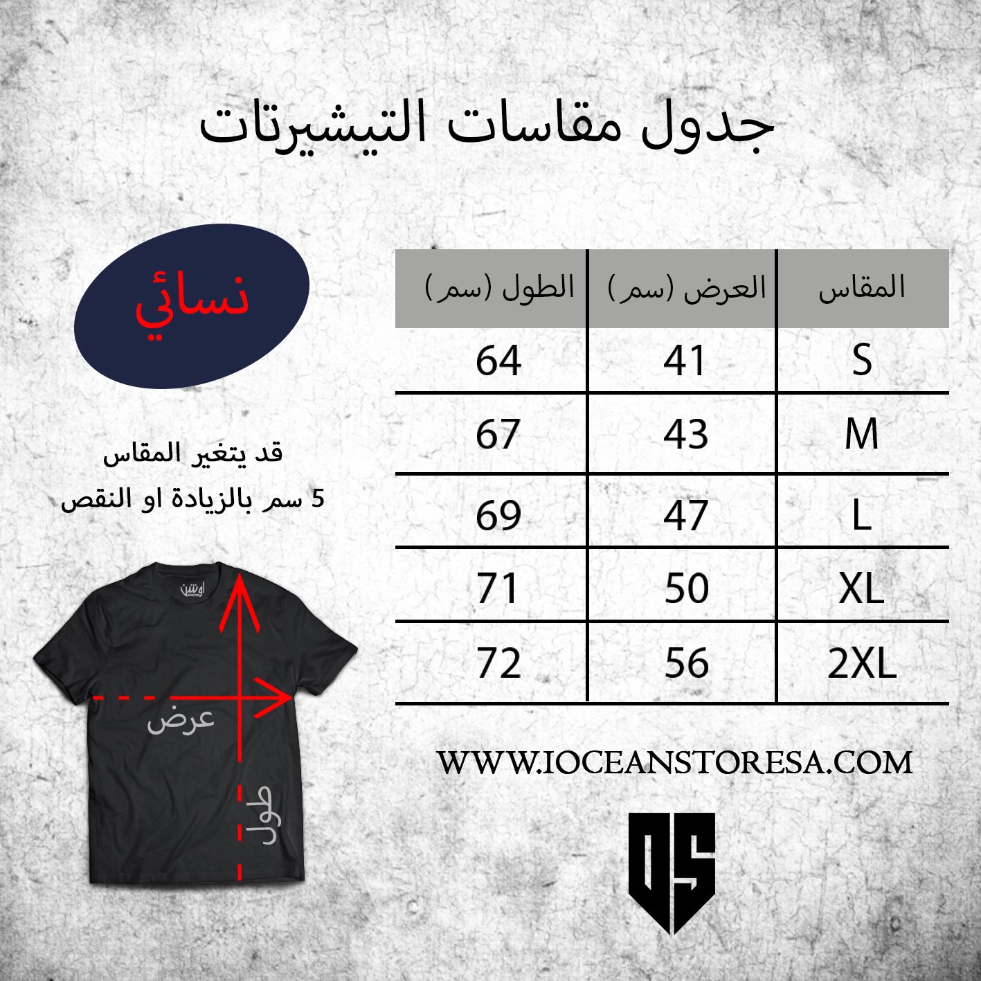 *بعض الخامات من اللون الأسود مقاسات أوفر سايز قد تزيد على المقاسات المعروضة من 5 الى 10 سم في حال رغبتك الطباعة على المقاسات القياسية اترك/ي لنا ملاحظة مع الطلب لنتجنب طباعة طلبك على مقاسات أوفر سايز